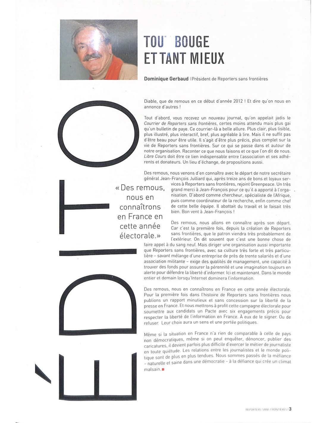 La revue de Reporters sans Frontières pour la liberté de l'information