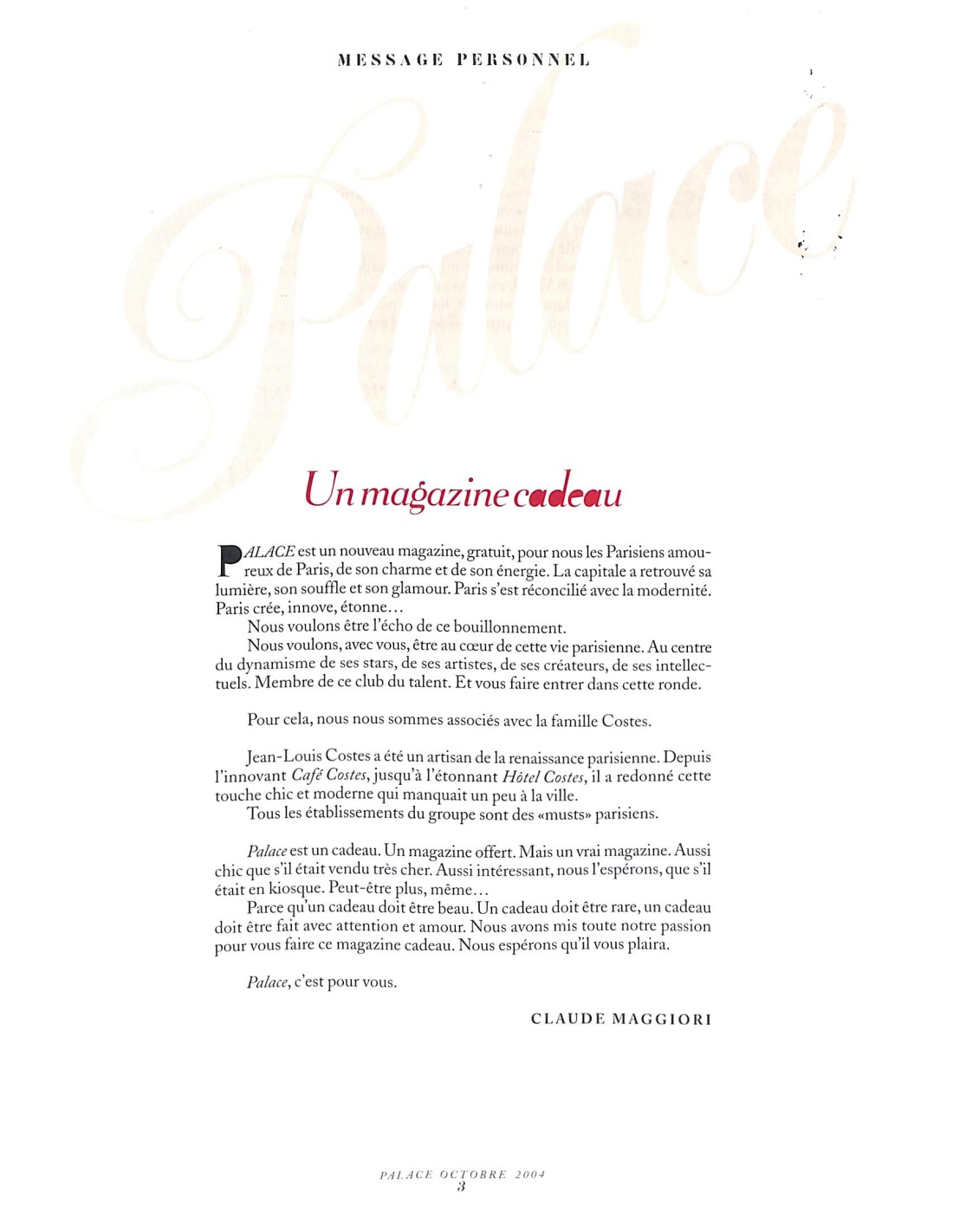 Magazine cadeau offert par Costes