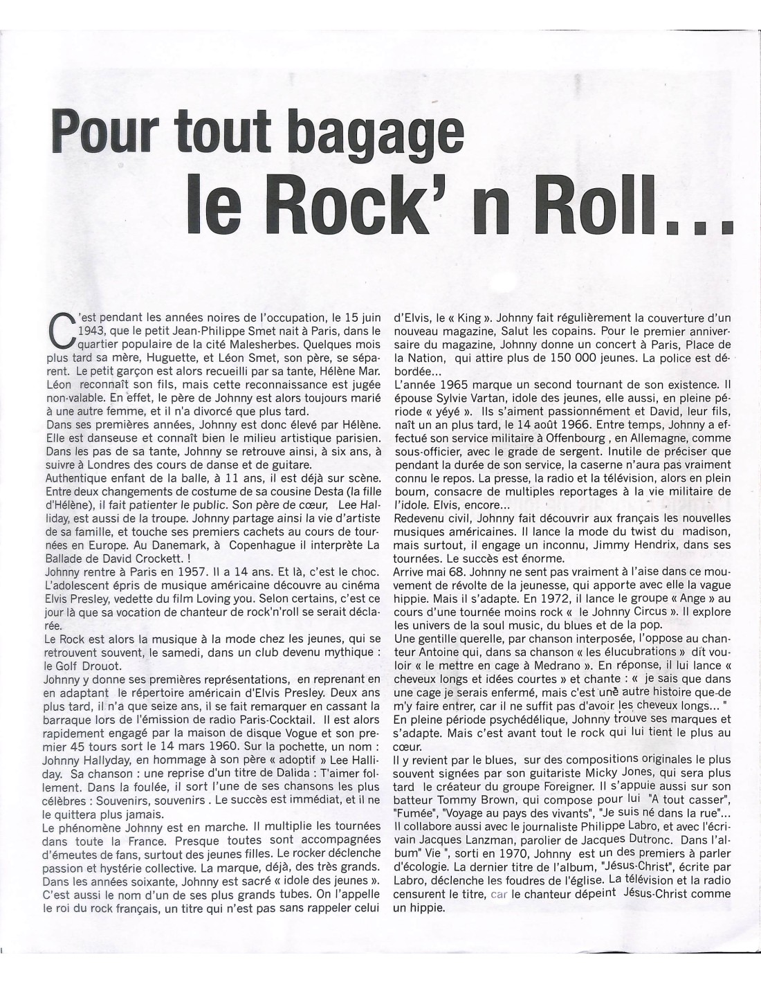 LA SCÈNE, LA VIE, L'AMOUR, LES AMIS ET LE ROCK'N ROLL
